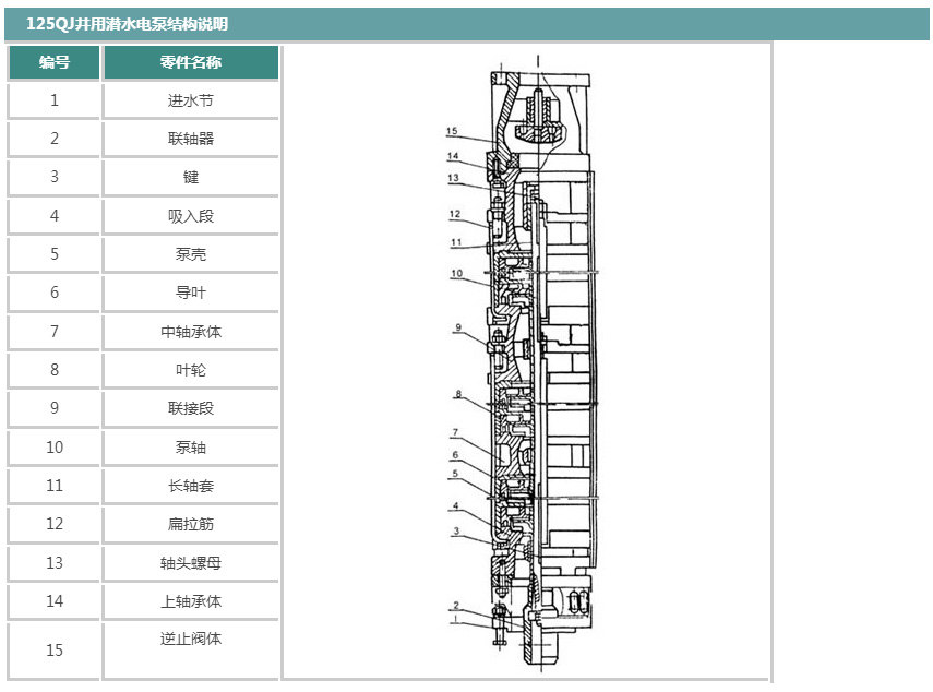 125QJ井用潛水(shui)電泵性能(néng)參數