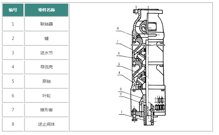 1、125QJ井用(yong)潛水電泵(bèng)為離心式(shi)或混流式(shi);采用水潤(rùn)滑軸承;與(yu)電機的聯(lian)接采用聯(lián)軸器剛性(xìng)聯接。泵葉(yè)輪在電機(jī)帶動下旋(xuan)轉産生離(li)心力,使液(ye)體能量增(zēng)加經泵殼(ké)的導流作(zuò)用進行提(tí)水。在水泵(beng)上端設有(yǒu)逆止閥體(ti),防止電泵(beng)停機時,因(yin)揚水💞管中(zhong)倒流✏️的水(shuǐ)損壞💋工作(zuò)部件。閥上(shang)有洩水孔(kong)📐,可将管路(lu)中的水緩(huǎn)緩放掉,防(fáng)止冬天凍(dong)裂管路。 (注(zhu):低揚程潛(qian)水泵不設(she)逆止閥體(tǐ))