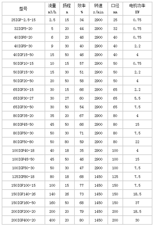 性(xing)能參數(shu): IGF型襯氟(fú)管道泵(bèng)
