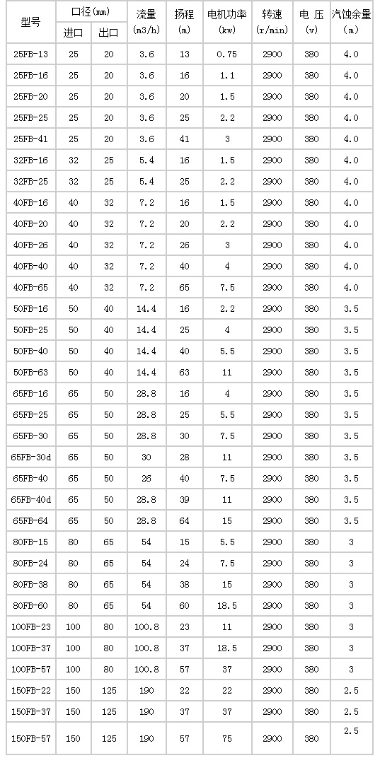 三(san)、技術參數(shu): FB、AFB型耐腐蝕(shi)離心化工(gōng)泵